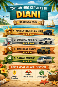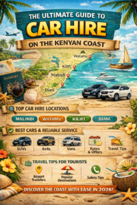 Planning a trip to the Kenyan Coast? Whether you’re heading to Diani, Mombasa, Watamu, Malindi, or Kilifi, having reliable transport is the key to a smooth and unforgettable experience. From self-drive car hire to airport transfers and guided tours, this complete 2026 guide covers everything you need to know before booking. 🌍 Why Transport Matters on the Kenyan Coast The coast is beautiful—but getting around can be challenging if you’re not prepared. That’s why most smart travelers choose:✔️ Car hire